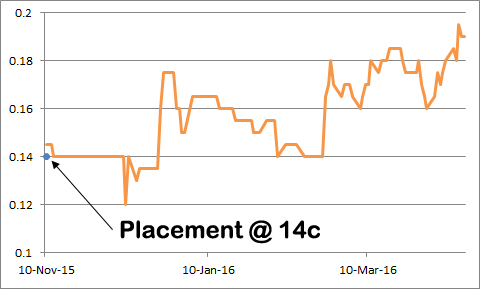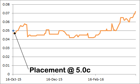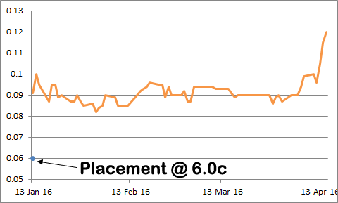 $1.3 million placement of 10,700,000 ordinary shares at 12.0c with 1 free attaching option for every 3 shares.