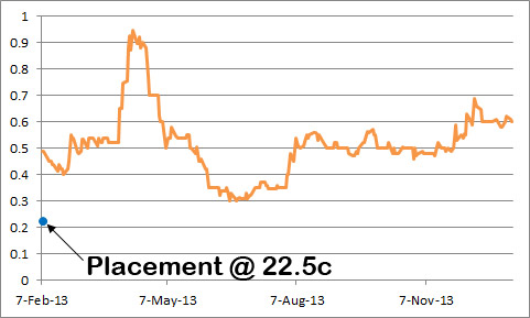 $2.2 million placement of 9,500,000 ordinary shares at 22.5c with 500,000 free attaching options