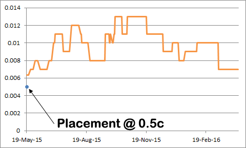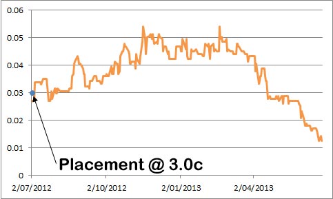 Lead Manager placing $1.3m for 43m shares at 3.0c with a 1 for 3 free option exercisable at 4.5c